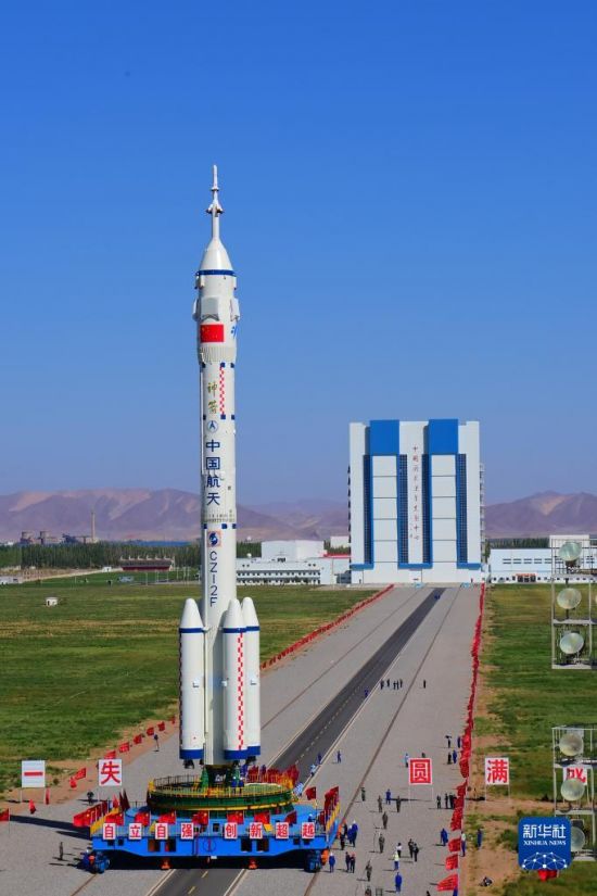 5月29日,神舟十四号载人飞船与长征二号F遥十四运载火箭组合体正在转往发射区途中。新华社发(汪江波 摄)