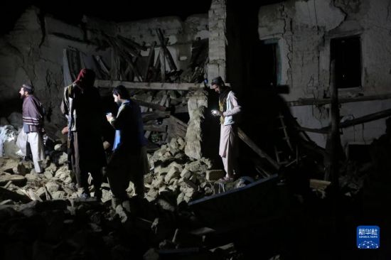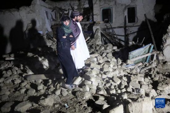 6月22日,在阿富汗东部帕克提卡省的一个村庄,人们查看地震中受损的房屋。新华社发(塞夫拉赫曼·萨菲摄)