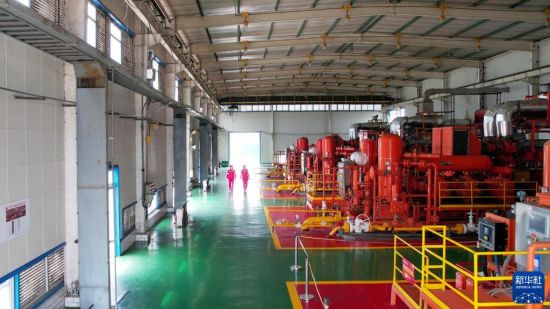 7月7日,在大张坨储气库作业区,员工在高温下对压缩机厂房进行巡检。新华社发(中国石油大港油田公司供图)
