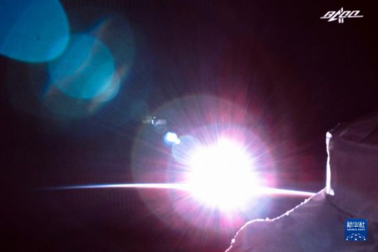 7月17日在北京航天飞行控制中心拍摄的天舟三号货运飞船撤离空间站组合体图像。这是天和核心舱外景相机实时图像。新华社记者 郭中正 摄