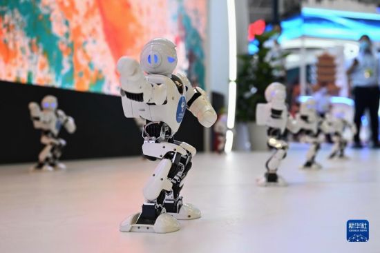 第五届数字中国建设成果展览会上的机器人在舞蹈表演(7月22日摄)。新华社记者 林善传 摄