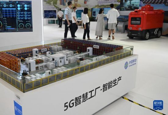 在第五届数字中国建设成果展览会上展出的5G智慧工厂-智能生产规划方案沙盘(7月22日摄)。新华社记者 林善传 摄