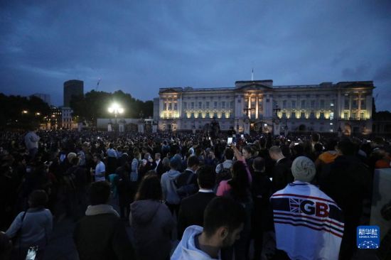 9月8日,民众聚集在英国伦敦的白金汉宫外。新华社记者李颖摄