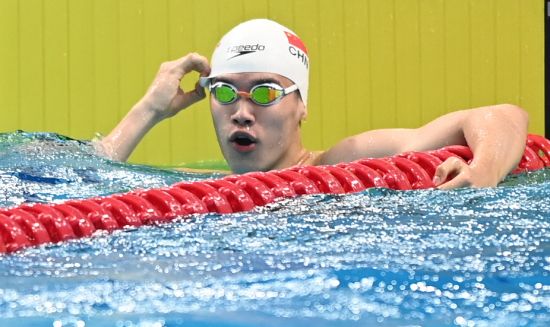 在当日的200米自由泳决赛中,潘展乐前半程一直跟着前辈汪顺,在后半程完成了超越,最终以1分44秒65的成绩夺冠,这也是到目前为止的今年世界最好成绩,和孙杨的亚洲纪录1分44秒39已相差不远。汪顺获得亚军,他游出了1分45秒71的个人最好成绩。