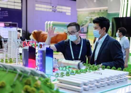 5月26日,观众在在中关村国家自主创新示范区展示中心了解100MW先进压缩空气储能技术。新华社记者 张晨霖 摄