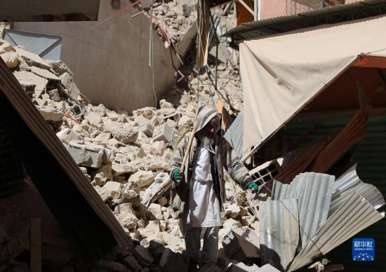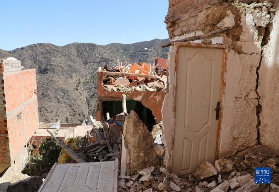 这是9月11日在摩洛哥马拉喀什南部的穆莱村拍摄的地震损坏的建筑。新华社记者王东震摄