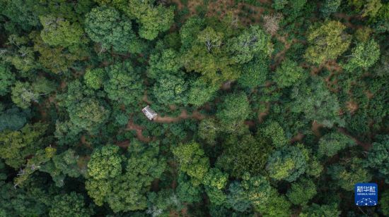 景迈山大平掌古茶林一景(无人机照片,9月14日摄)。新华社记者 胡超 摄