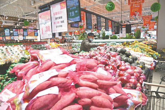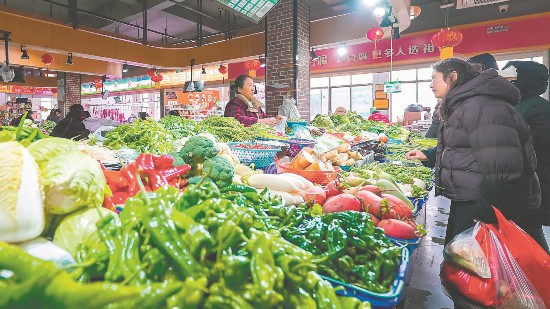 1月20日,合肥市庐阳区合家福超市四牌楼店,市民在购买蔬菜。面对近期寒潮天气,合肥市通过强化生产保障、拓宽供应渠道,全力确保市民“菜篮子”货足价稳。本报通讯员 方好 摄