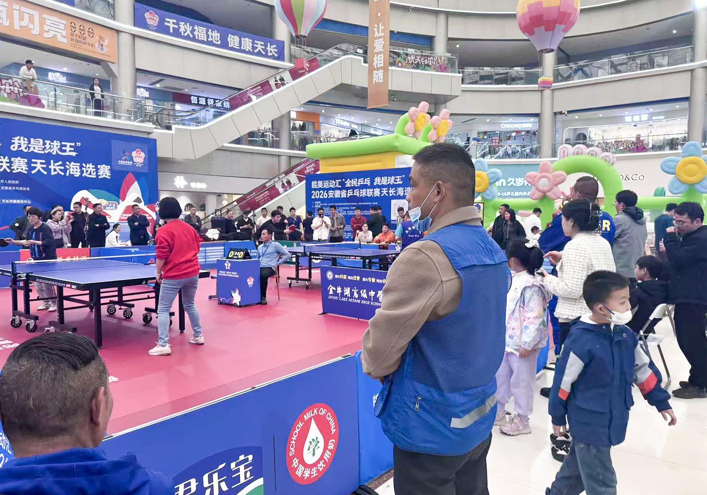 自2026年3月开赛以来,安徽省“全民乒乓 我是球王”联赛(徽乒赛)天长市海选赛在天发广场中庭火热举行,赛事热度持续攀升,掀起全民参与乒乓球运动的热潮。